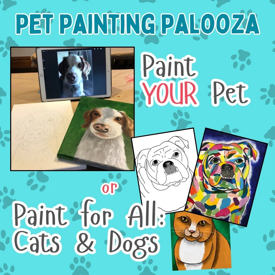 We are having a pet-themed paint party! Bring your family and friends… and pets! We have two options to choose from - you can do a custom pet portrait from a photo of your pet (send it to us and we’ll draw it on the canvas), or a generic cat or dog of your choice! Plus, you choose the colors and style - whether you want to go realistic, or colorful and abstract.