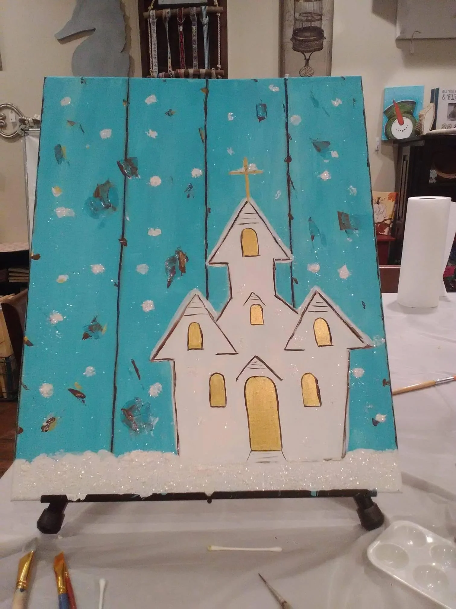 Depending on the size of your group, you can come to us, or we can go to you! We charge an additional on-site fee of $50, plus the cost of travel (based on mileage using current IRS rates). We will bring the painting supplies, and you will provide tables and chairs.