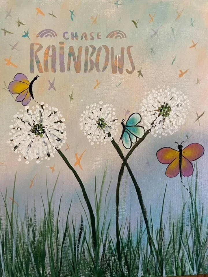• Make the party magical! We will include butterfly decorations and each participant can dress up with fairy wings while they paint. We’ll also add a special touch to their painting with shimmer paint and/or glitter, depending on the design.
