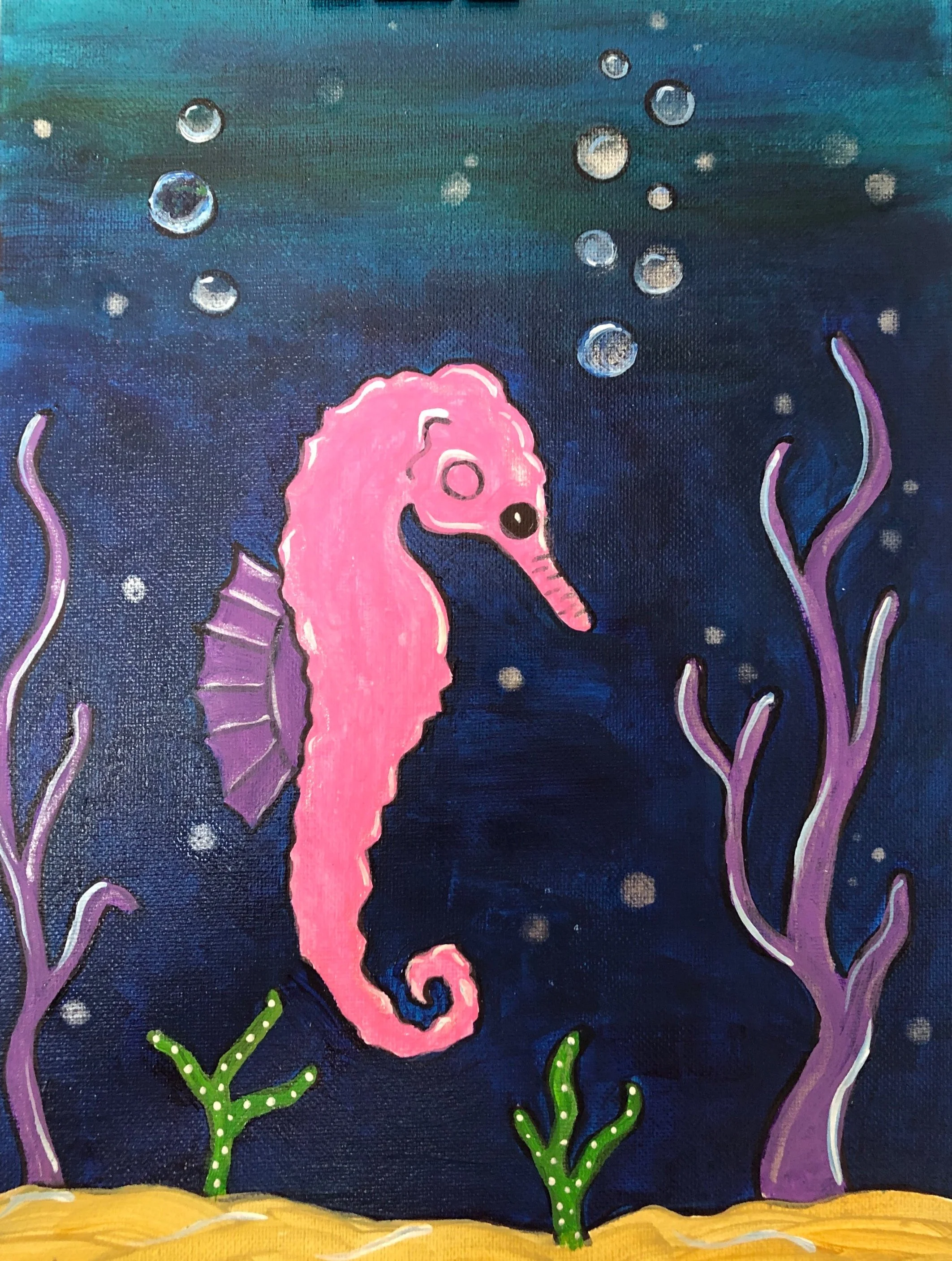 Parties for this age group are scheduled for 1.5 hours. We paint for 1 hour, and you have 30 minutes for food, cake, presents, etc. During the painting portion, each painter will receive an 11”x14” wrapped canvas, pre-sketched with the chosen design, which they will get to paint and bring home. Our instructor will lead the group with step-by-step instructions for painting. We use acrylic paints, so make sure to tell your guests to leave those party dresses at home and dress for mess! We have aprons for everyone to use, but paint just seems to know how to get around them!